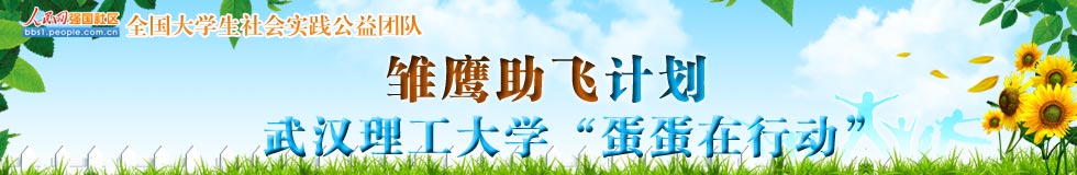 武漢理工大學(xué)“蛋蛋在行動”成立于2011年12月,是一支致力于開展包括支教在內(nèi)的公益活動,援助山區(qū)貧困學(xué)生的公益團(tuán)隊,目前擁有成員89人。2年多來,舉辦的活動有暑期支教、蛋蛋公益文化周、暖冬行動、聯(lián)合余區(qū)六院青協(xié)為胡夢婷募捐、愛心義賣等活動,吸引廣大師生參與,累計覆蓋人數(shù)超過一千人,募集款項18738.42元、物品五千余件。