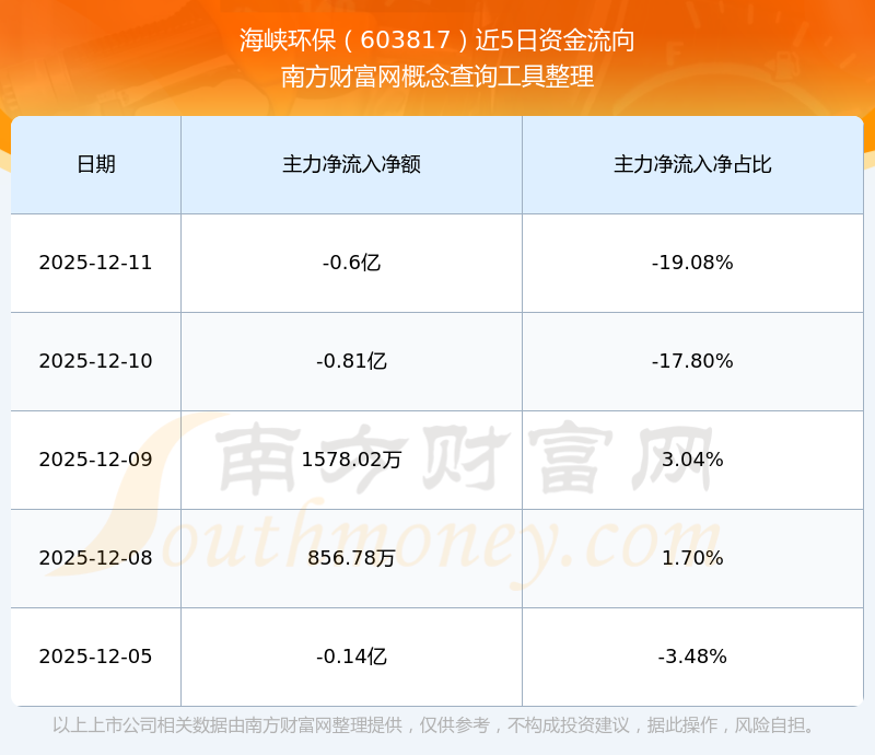 二、海峽環(huán)保(603817)近期盤面、資金面情況