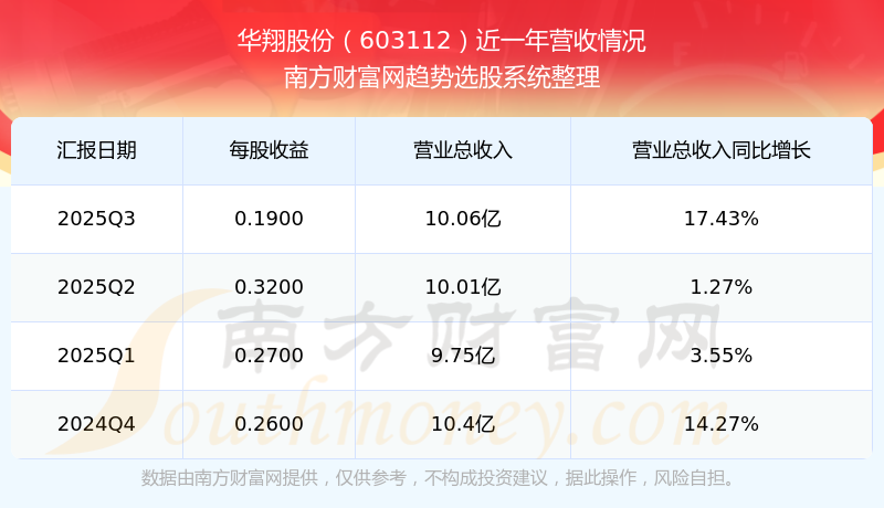 華翔股份2025年第三季度顯示,公司主營收入10.06億元,同比17.43%;歸母凈利潤1.15億元,同比4.77%;扣非凈利潤1.05億元,同比7.48%。