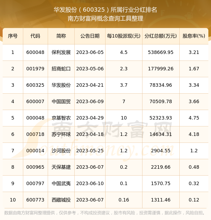 按照南方財(cái)富網(wǎng)趨勢選股系統(tǒng)統(tǒng)計(jì),華發(fā)股份所屬行業(yè)為房地產(chǎn)開發(fā)行業(yè),房地產(chǎn)開發(fā)行業(yè)分紅排名情況如下表: