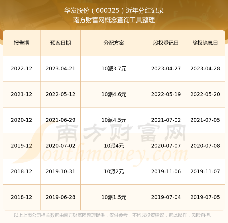 華發(fā)股份最新一次公布的分紅方案為10派3.7元。本次權(quán)益分派股權(quán)登記日為2023年4月27日,除權(quán)除息日為2023年4月28日,派息日為2023年4月28日。