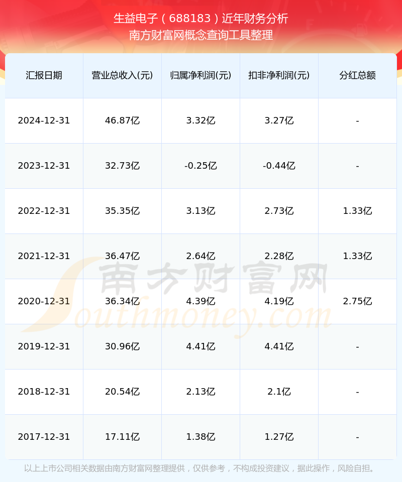 近年生益電子分紅派息情況如下表所示: