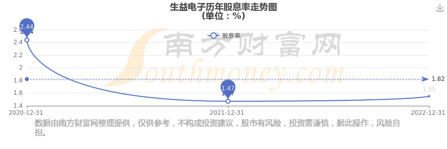 生益電子歷年股息率走勢如下圖: