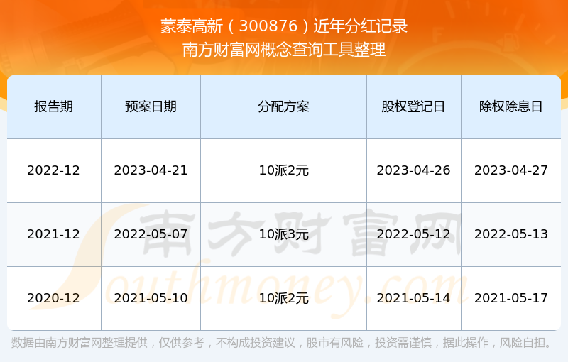 蒙泰高新歷年分紅派息情況如下表所示: