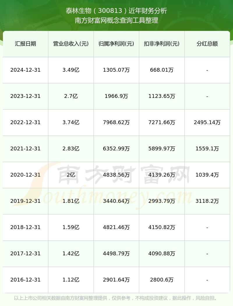近年泰林生物分紅派息情況如下表所示: