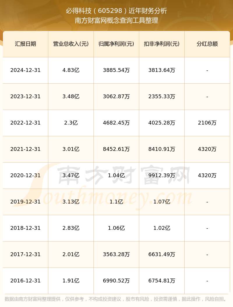 2024年必得科技總營(yíng)收4.83億,同比增長(zhǎng)38.73%;凈利潤(rùn)3885.54萬,同比增長(zhǎng)26.86%;銷售毛利率42%。