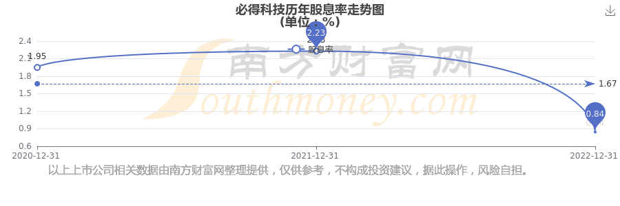 必得科技?xì)v年股息率走勢(shì)如下圖:
