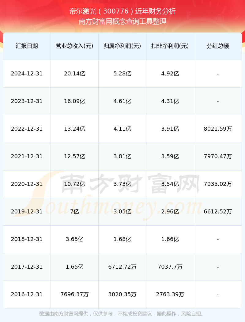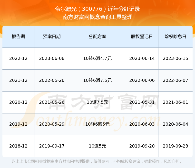 帝爾激光歷年分紅派息情況如下表所示: