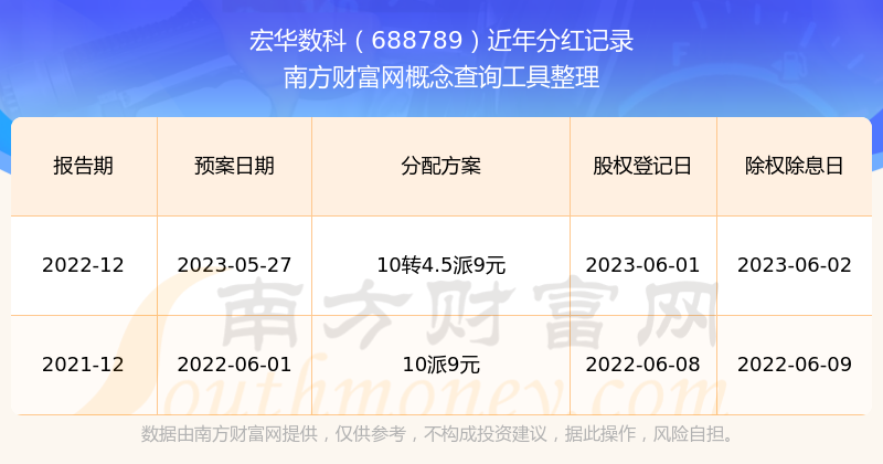 宏華數(shù)科最新一次公布的分紅方案為10轉(zhuǎn)4.5派9元。本次權(quán)益分派股權(quán)登記日為2023年6月1日,除權(quán)除息日為2023年6月2日,派息日為2023年6月2日。