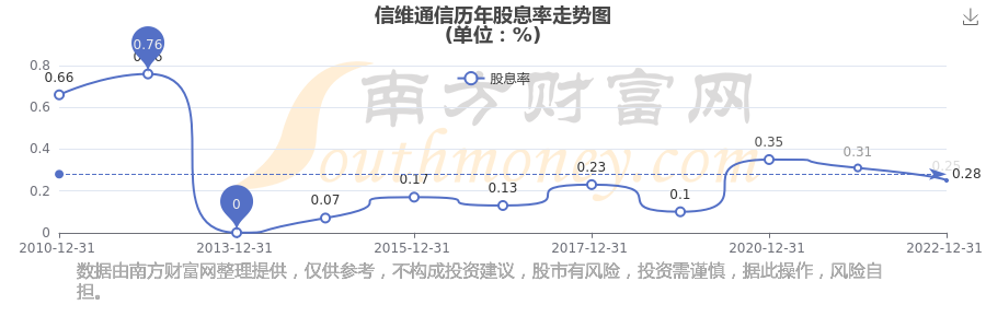 信維通信最新一次公布的分紅方案:10派0.5元。