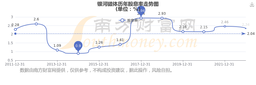 銀河磁體最新一次公布的分紅方案:10派4元。