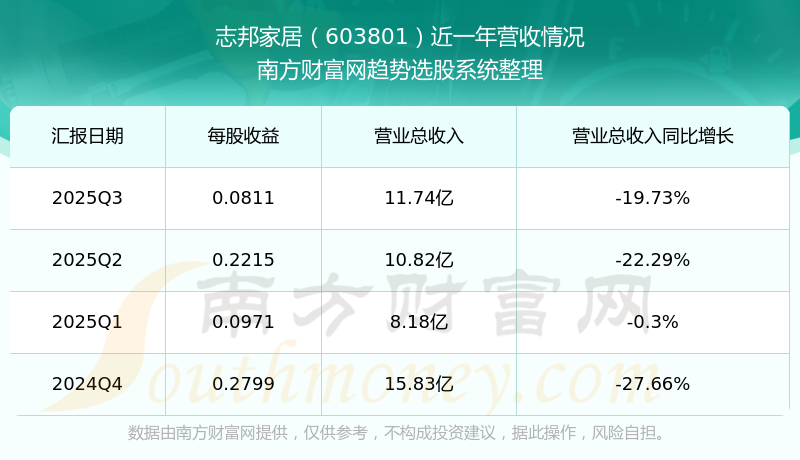 按照南方財(cái)富網(wǎng)概念查詢工具統(tǒng)計(jì),該股所屬板塊為定制家居板塊,該板塊共有13只股票,志邦家居2025第三季度營收在該板塊中排名為第4名,該板塊2025第三季度營收排名前十的股票如下表: