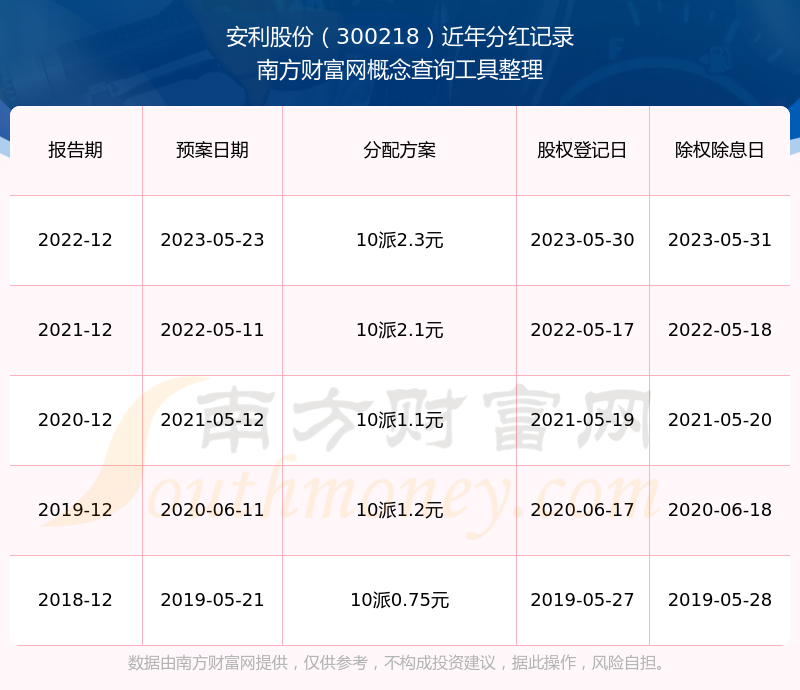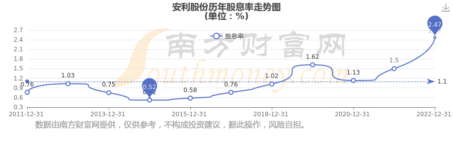 安利股份最新一次公布的分紅方案:10派2.3元。