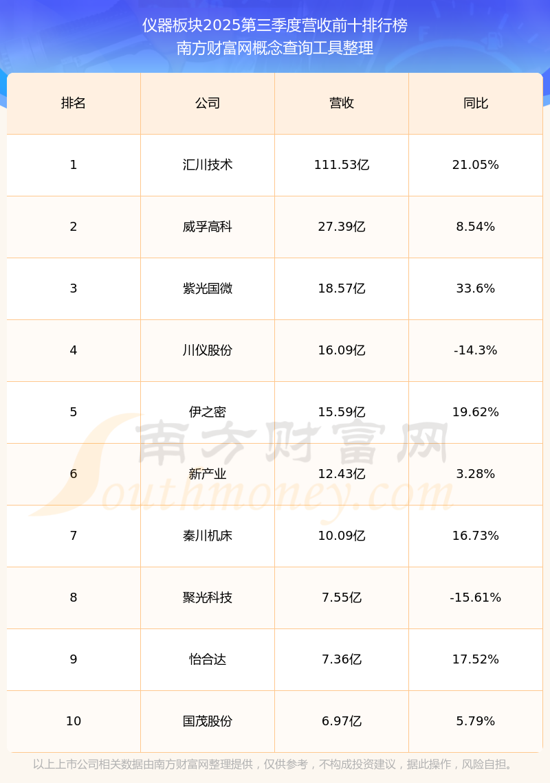 按照南方財(cái)富網(wǎng)概念查詢工具統(tǒng)計(jì),該股所屬板塊為儀器板塊,該板塊共有25只股票,坤恒順維2025第三季度營收在該板塊中排名為第25名,該板塊2025第三季度營收排名前十的股票如下表: