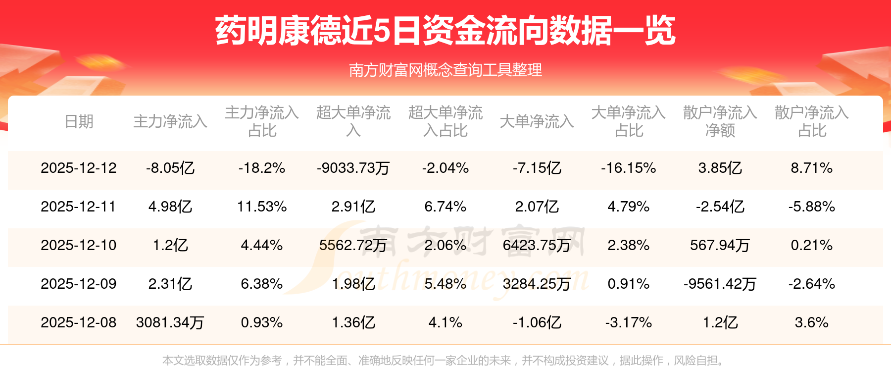 12月12日消息,藥明康德主力資金凈流出8.05億元,超大單資金凈流出9033.73萬(wàn)元,散戶資金凈流入3.85億元。