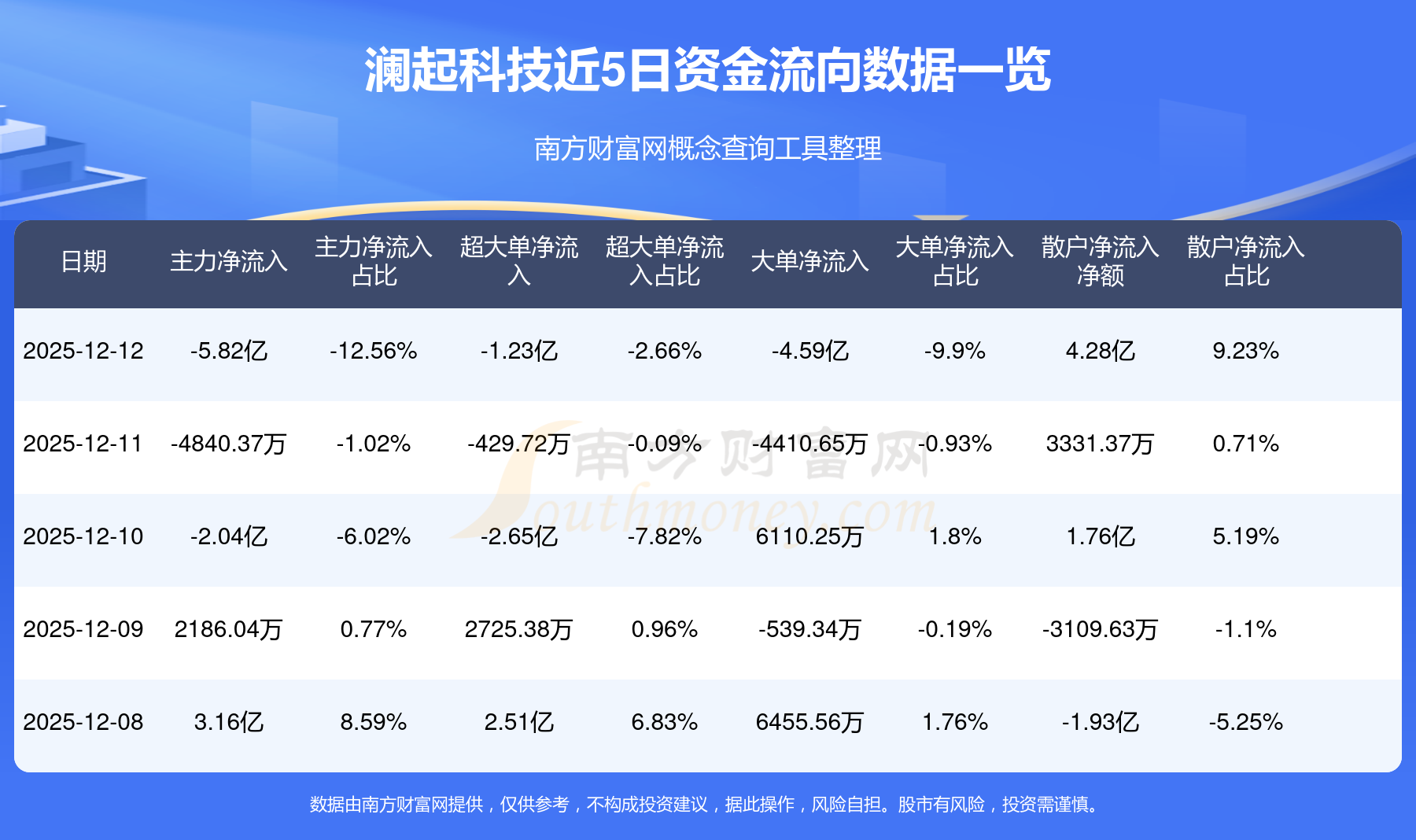 12月12日消息,瀾起科技12月12日主力凈流出5.82億元,超大單凈流出1.23億元,大單凈流出4.59億元,散戶凈流入4.28億元。