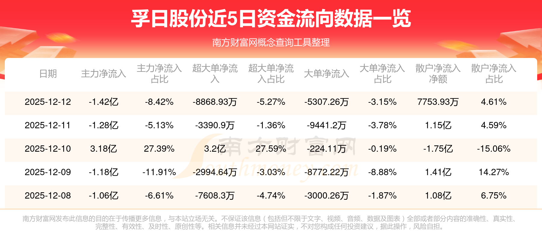 近5日資金流向一覽見下表: