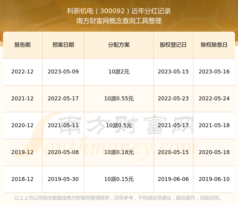 科新機(jī)電最新一次公布的分紅方案:10派2元。