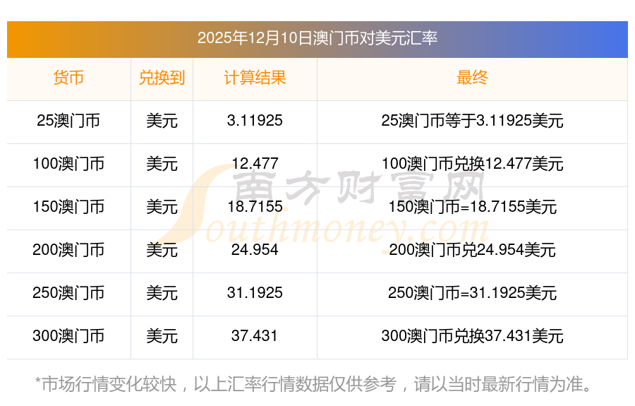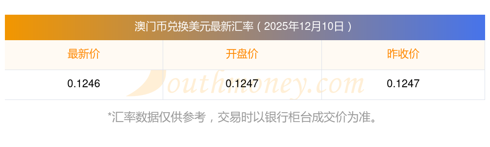 南方財(cái)富網(wǎng)為您提供澳門幣對美元匯率最新價(jià)格詳情。