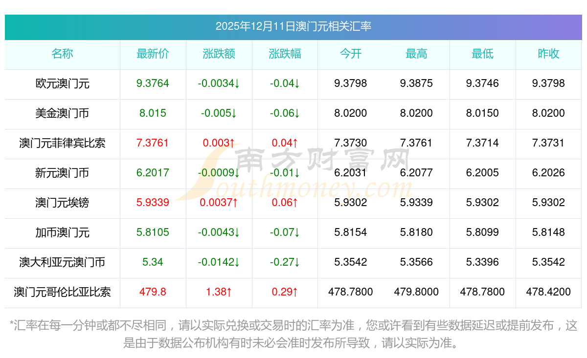 根據(jù)2025年12月11日匯率,澳門元兌換丹幣匯率最新0.796400,今開0.7963,昨收0.7963,最高0.7966,最低0.7956。