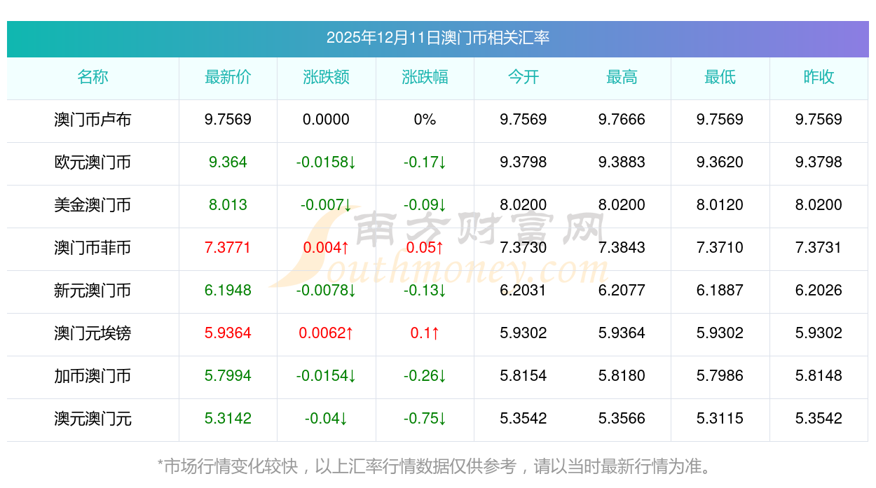 2025年12月11日澳門幣相關(guān)匯率查詢