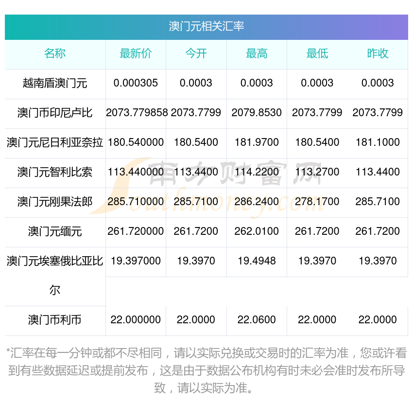 南方財(cái)富網(wǎng)為您提供澳門元對(duì)人民幣匯率最新價(jià)格詳情。
