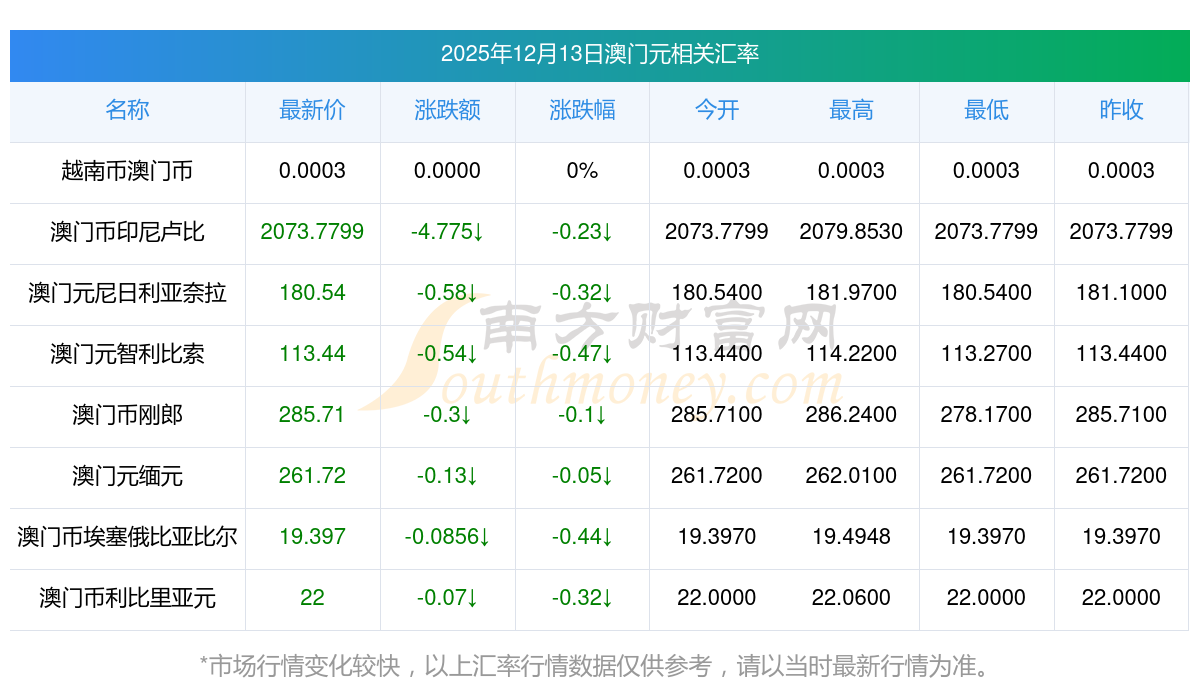 根據(jù)2025年12月13日匯率計(jì)算,MOP兌換EGP匯率最新價(jià)5.924700:今日開價(jià)5.9247,昨日收價(jià)5.9247,最高價(jià)5.9314,最低價(jià)5.9247。