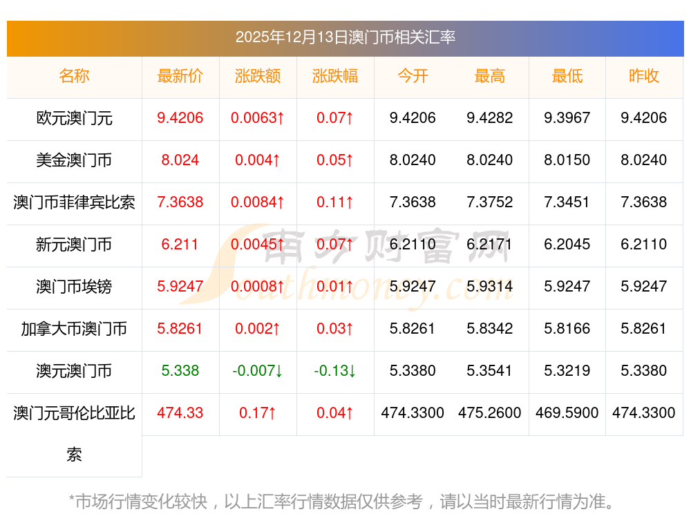 2025年12月13日澳門幣相關(guān)匯率查詢