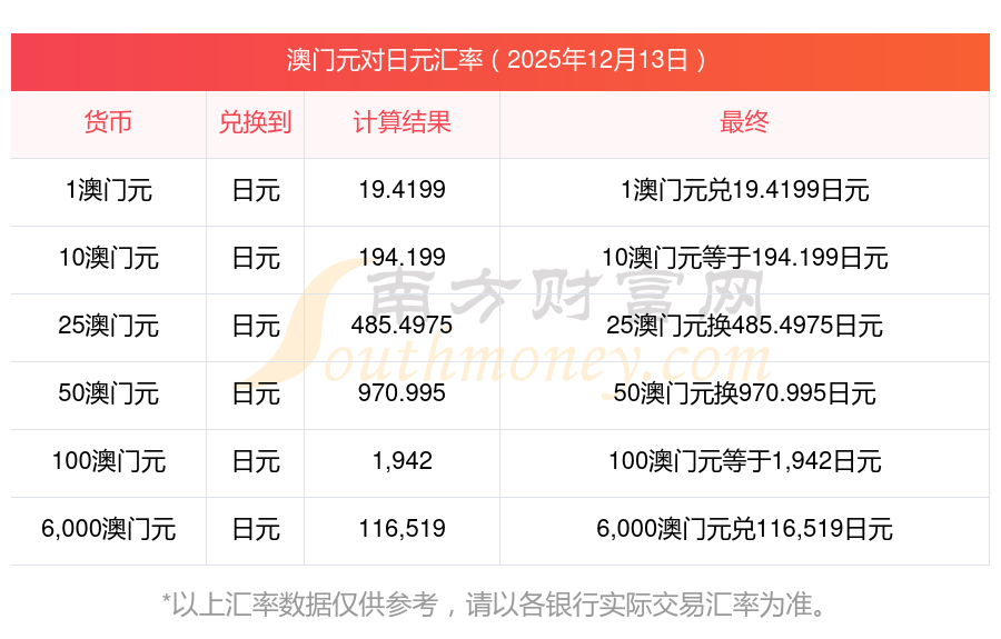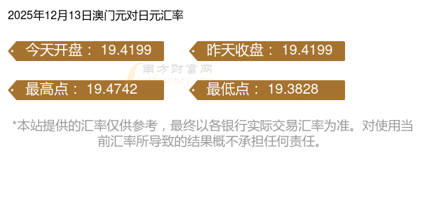 今天澳門幣與日元兌換匯率多少?2025-12-13