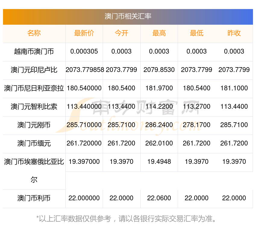 南方財(cái)富網(wǎng)為您提供澳門幣對(duì)人民幣匯率最新價(jià)格詳情。