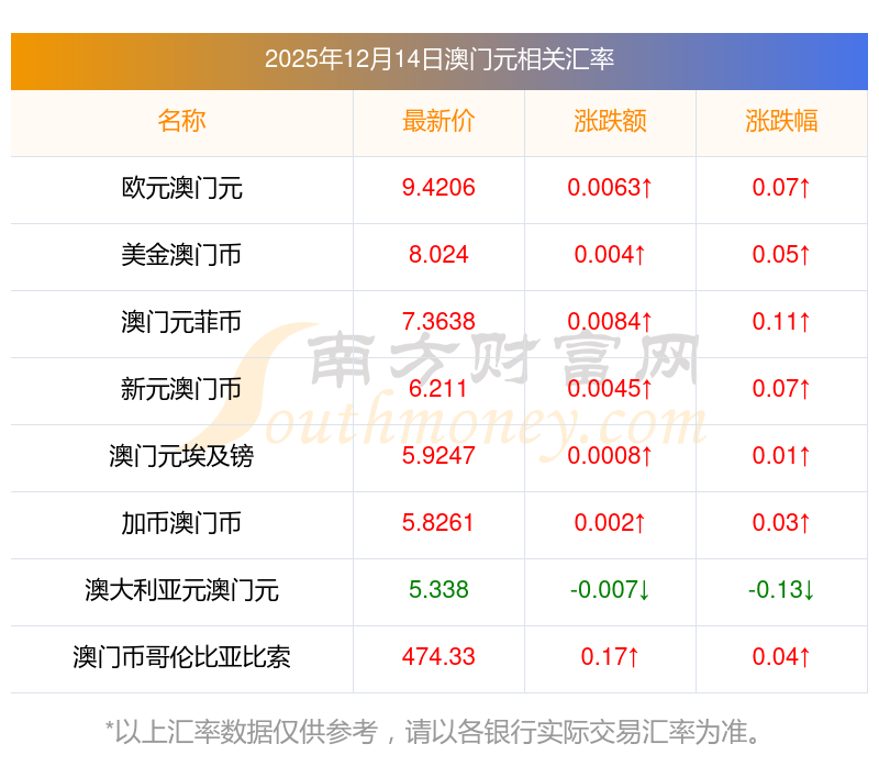 2025年12月14日最新消息,澳門元兌換挪威克朗最新匯率為1.263400,今開為1.2634,昨收為1.2634,最高為1.2657,最低為1.2543。