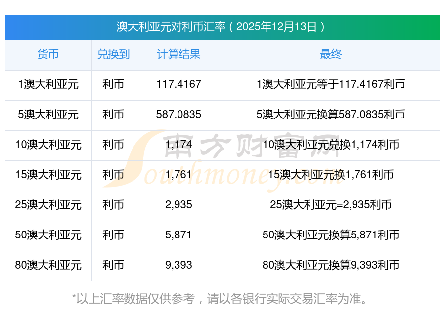 2025/12/13澳大利亞元18折算成利幣匯率是多少 匯率查詢方法