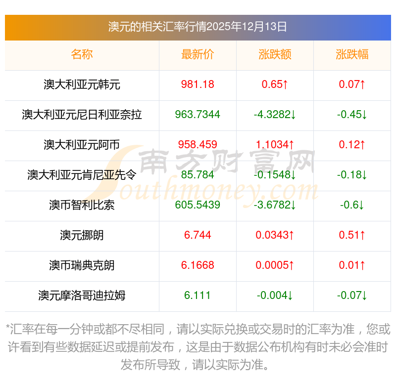 根據(jù)今天2025年12月13日匯率計(jì)算,AUD兌換UYU匯率最新價(jià)26.067900,今開價(jià)26.0679,昨收價(jià)26.0679,最高價(jià)26.2059,最低價(jià)25.9895。