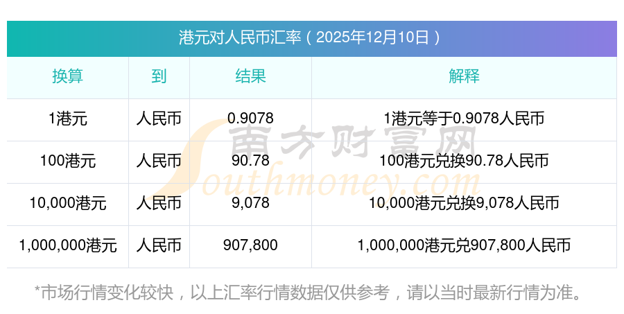 南方財富網(wǎng)為您提供港元對人民幣匯率最新價格詳情。