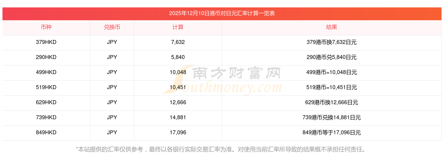 日元今日匯率實(shí)時(shí)查詢 118港幣對日元匯率2025-12-10