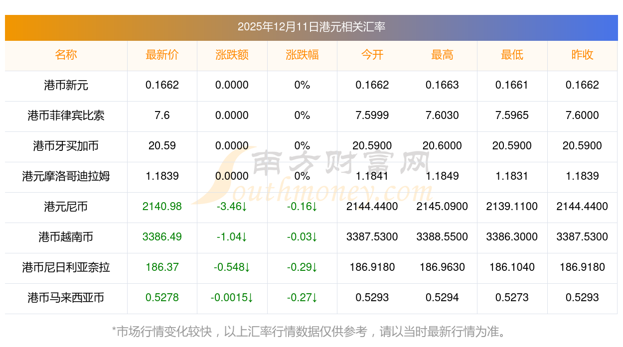 2025年12月11日港元相關(guān)匯率查詢