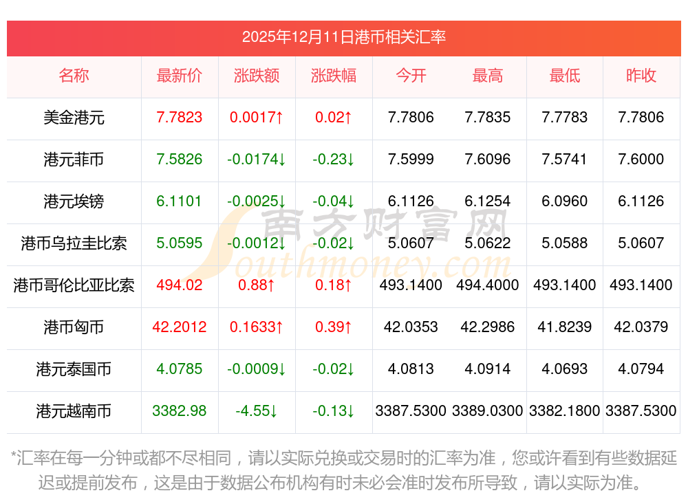 根據(jù)2025年12月11日匯率,港幣兌換剛郎匯率最新價294.770000,今開價294.8000,昨收價294.8000,最高價295.0500,最低價294.7000。