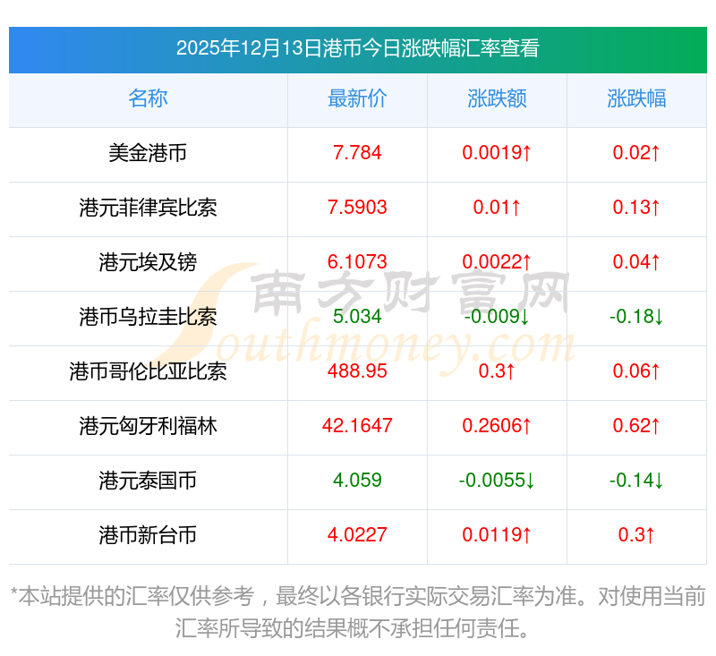 南方財(cái)富網(wǎng)為您提供港幣對(duì)新臺(tái)幣匯率最新價(jià)格詳情。