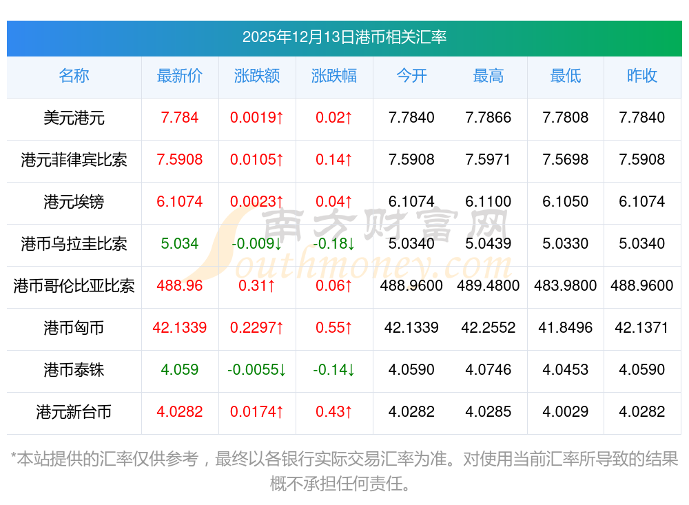 根據(jù)2025年12月13日匯率計算,HKD兌換UYU匯率最新價5.034000: