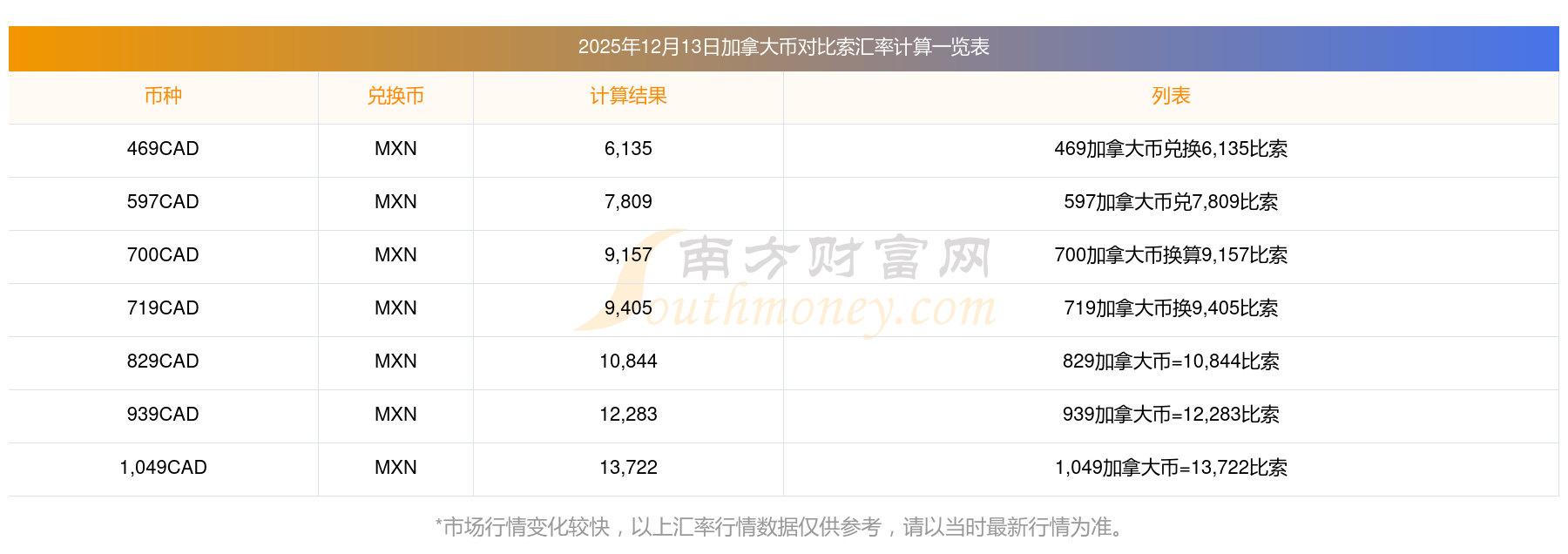 2025年12月13日比索換加拿大幣匯率是:0.07645