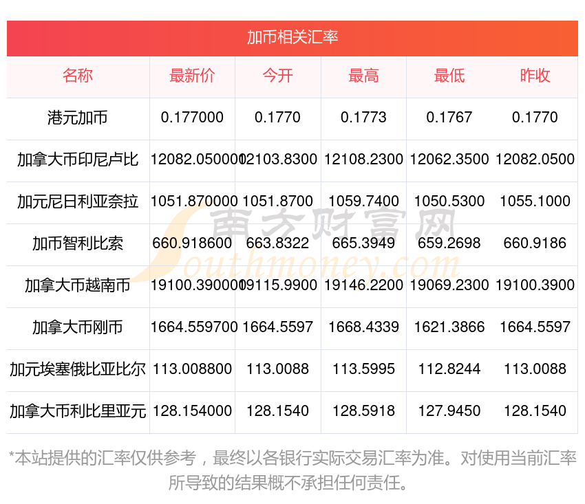 南方財富網(wǎng)為您提供加幣對牙買加元匯率最新價格詳情。
