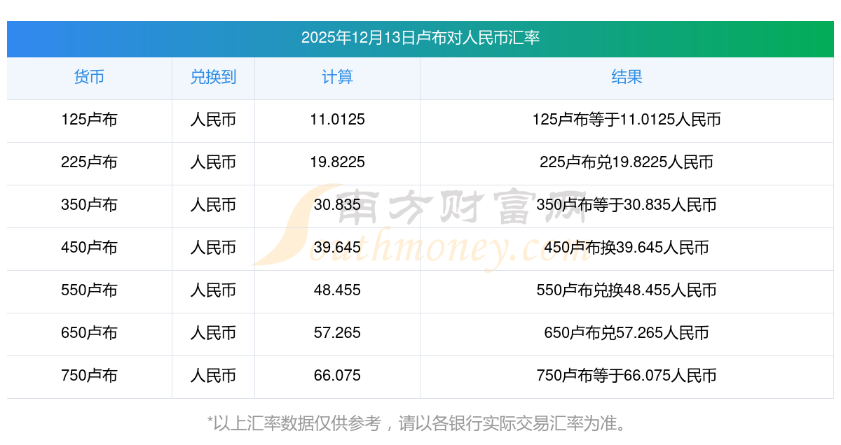 南方財(cái)富網(wǎng)為您提供盧布對人民幣匯率最新價(jià)格詳情。