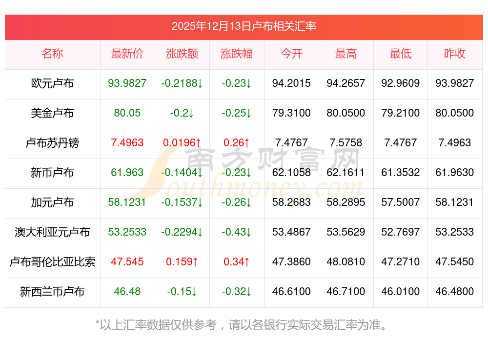 根據(jù)2025年12月13日匯率計(jì)算,RUB兌換ETB匯率最新價(jià)1.944300:今日開價(jià)1.9443,昨日收價(jià)1.9443,最高價(jià)1.9726,最低價(jià)1.9443。