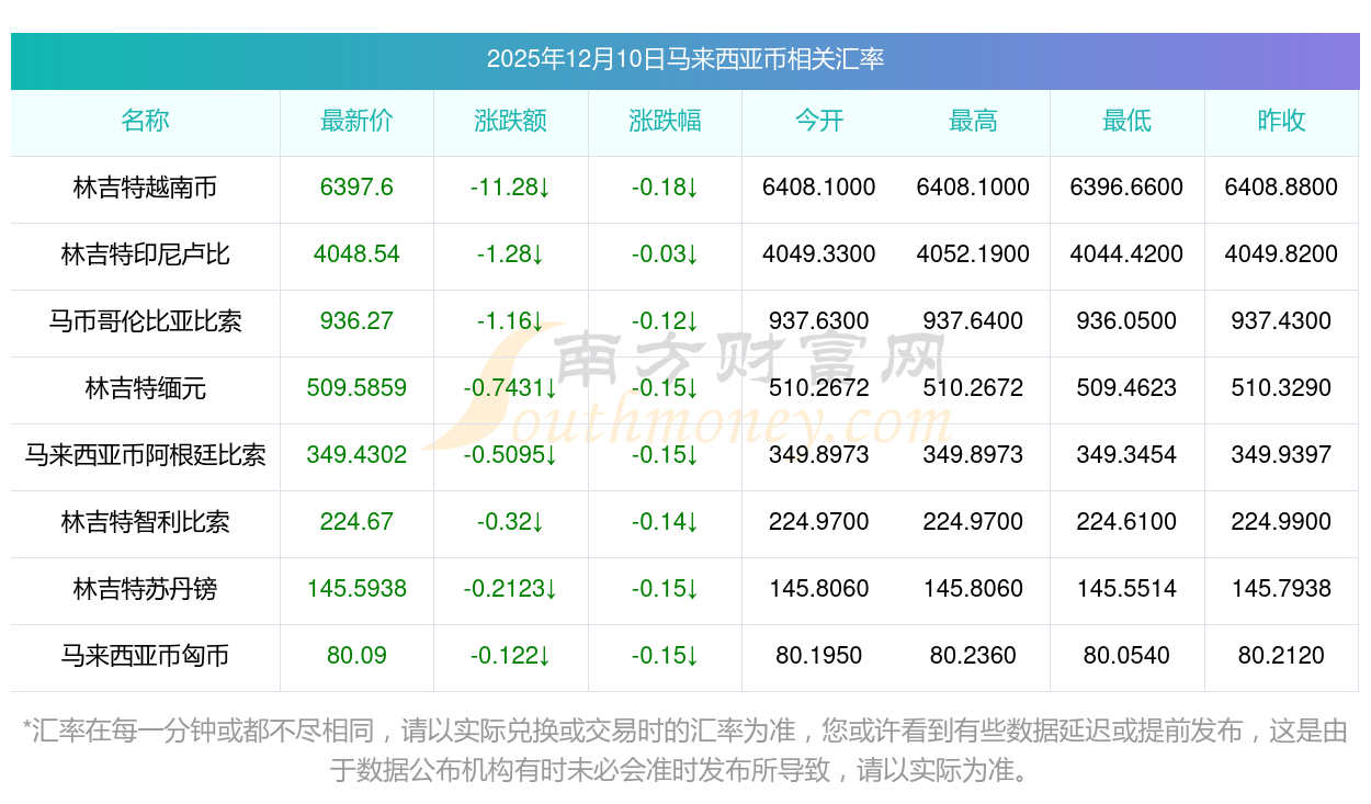 2025年12月10日馬來西亞幣相關(guān)匯率查詢