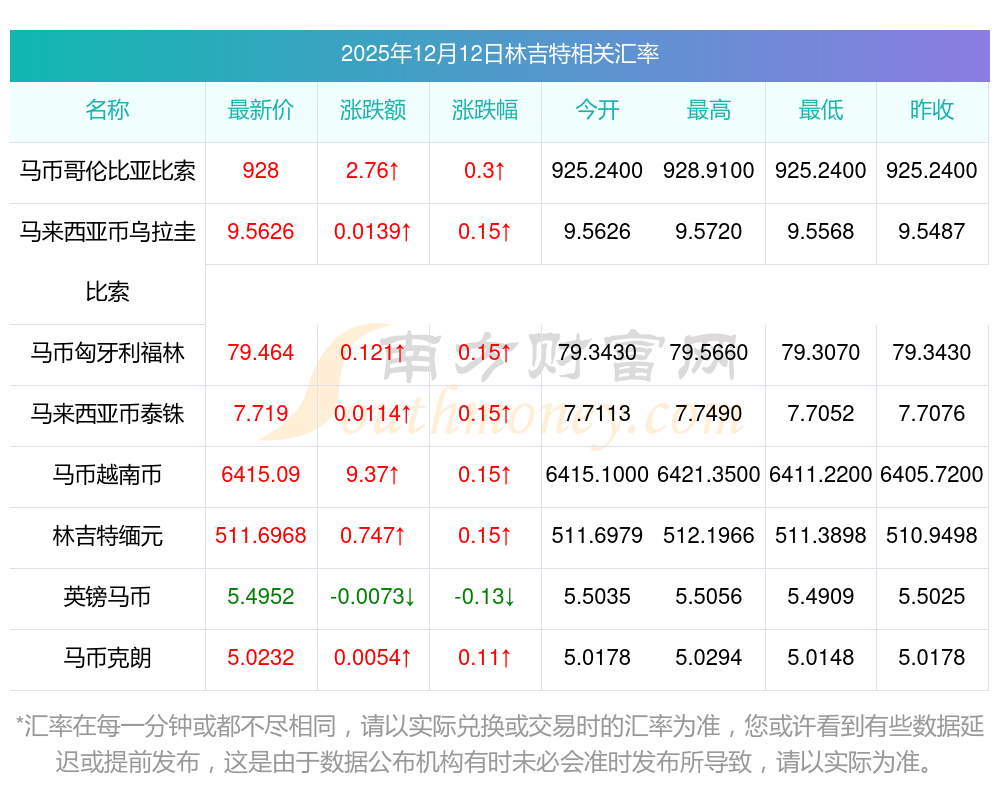 2025年12月12日林吉特相關(guān)匯率查詢