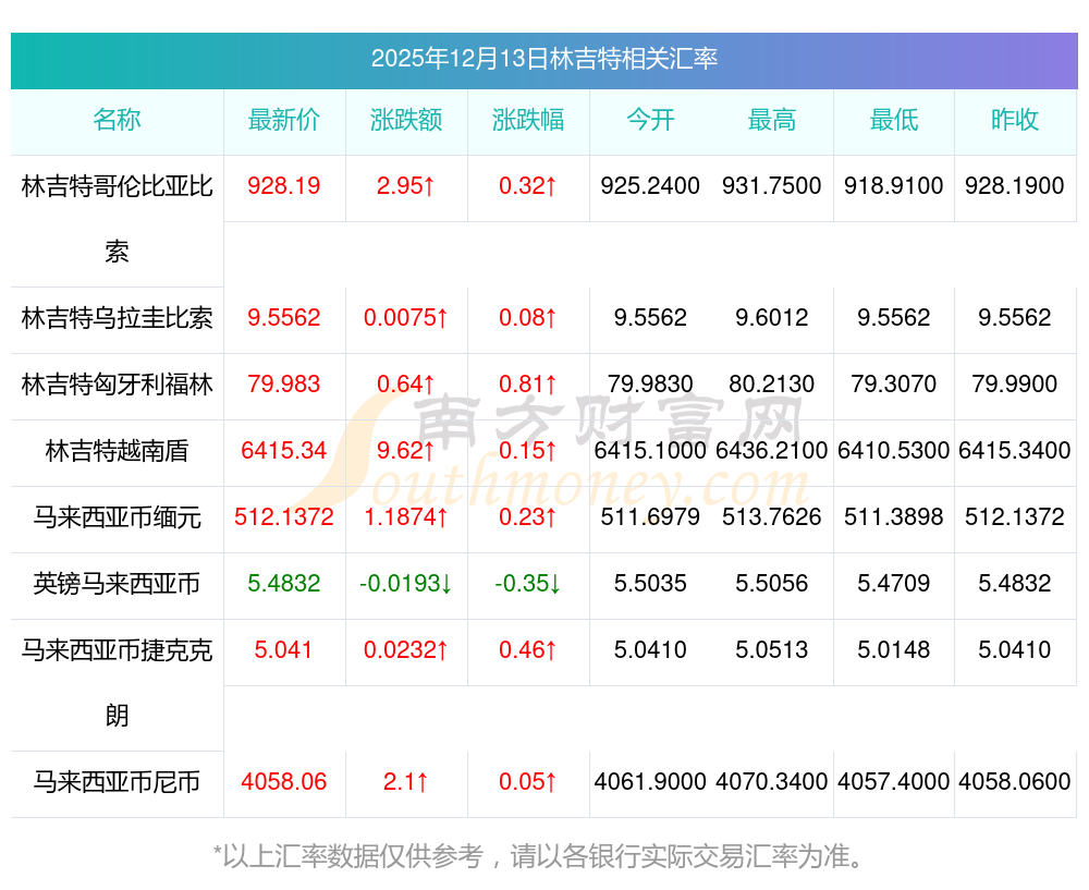 2025年12月13日林吉特相關(guān)匯率查詢
