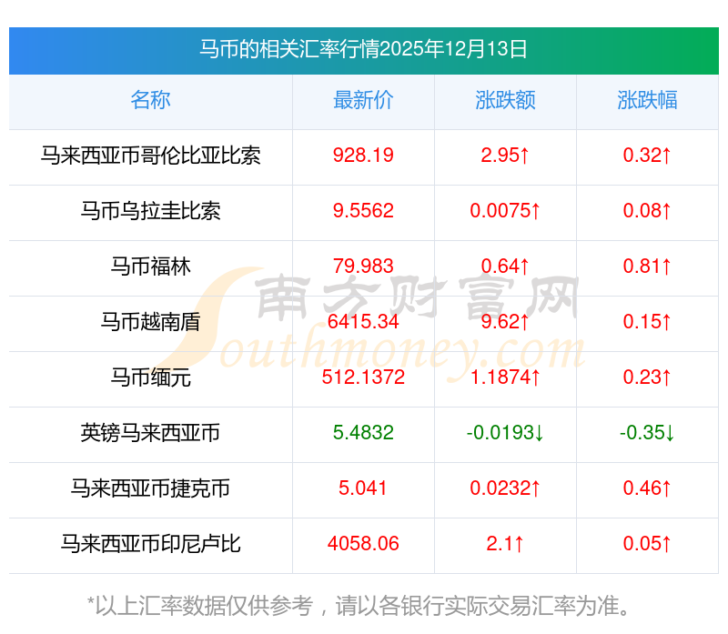 2025年12月13日馬幣相關(guān)匯率查詢