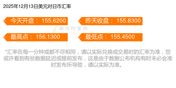 日幣今日匯率實時查詢 101美元對日幣匯率2025/12/13