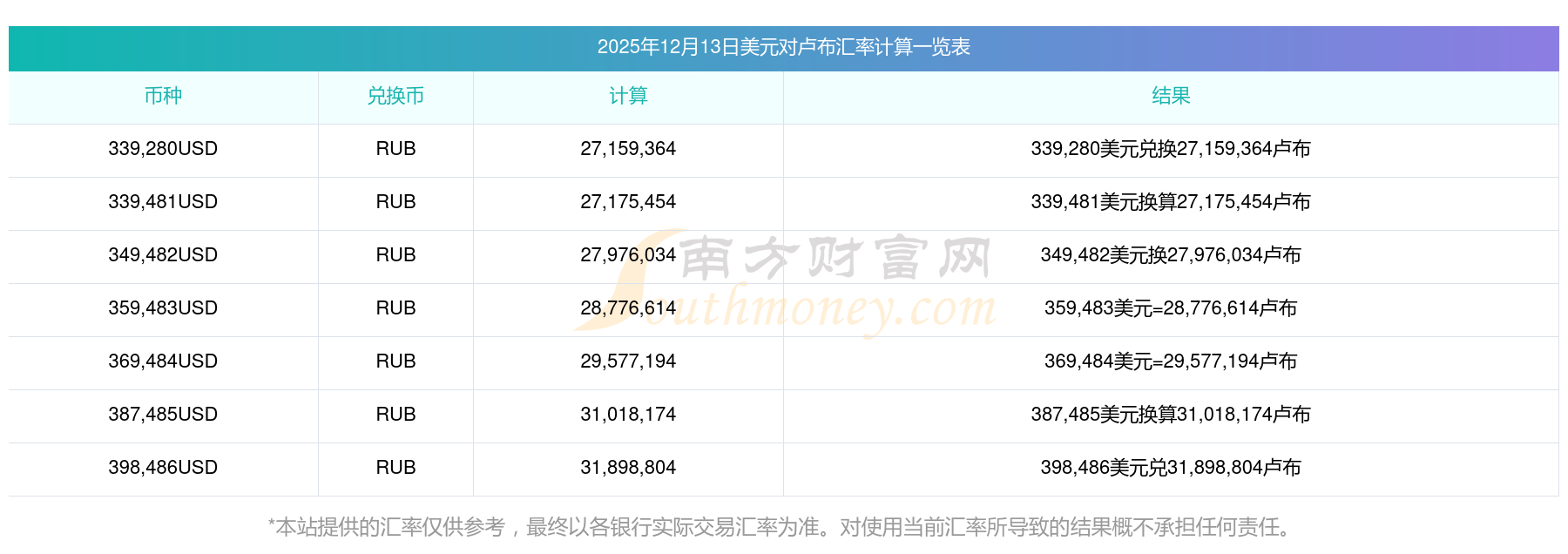 南方財富網(wǎng)為您提供美元對盧布匯率最新價格詳情。