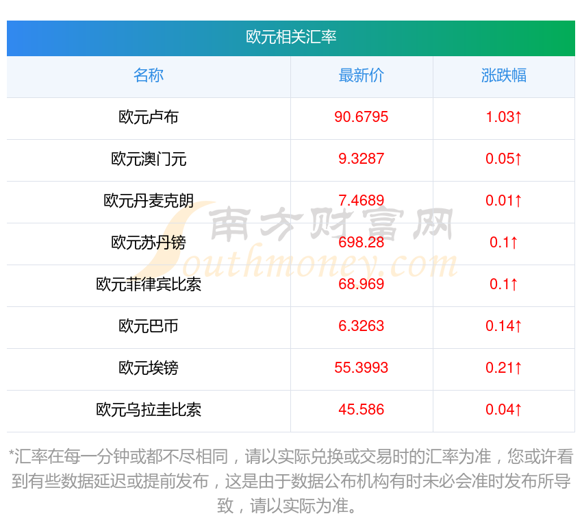 根據(jù)2025年12月10日匯率,歐元兌換烏拉圭比索匯率最新45.586000,今開45.5700,昨收45.5700,最高45.6940,最低45.5530。